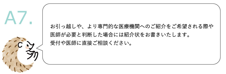 Q7.他の医療機関へ紹介してもらいたいときには紹介状は書いてもらえますか?